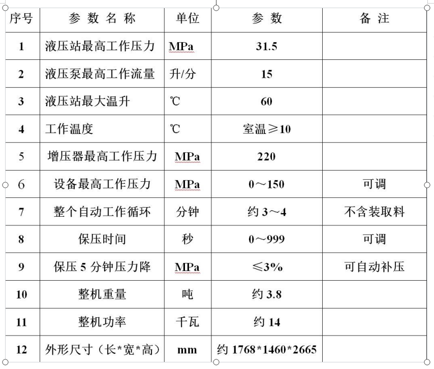 GDJ 150/800-150-A干帶等靜壓機(jī)技術(shù)參數(shù)表